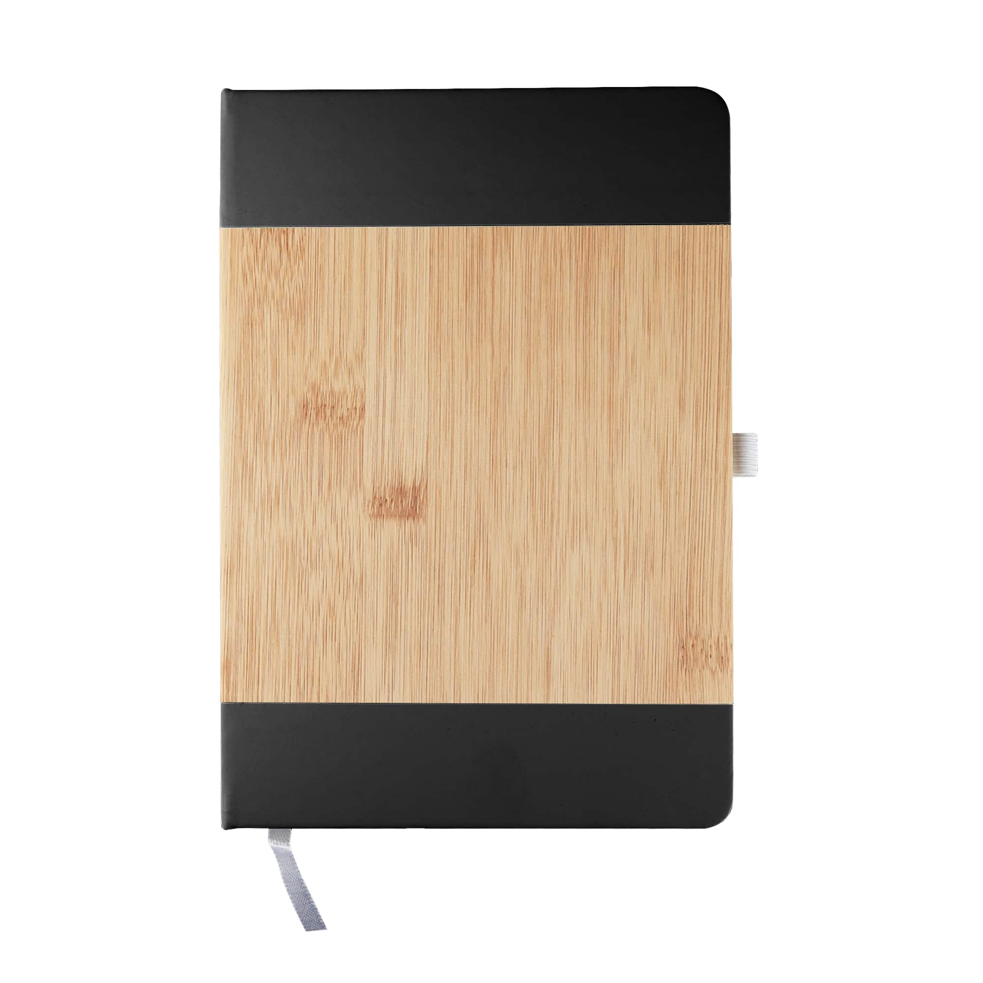Capture your ideas in style with this eco-friendly A5 notebook, featuring a natural bamboo cover paired with sleek white accents for a modern, sustainable look. Designed for both practicality and branding appeal, it includes a matching elastic pen loop and ribbon marker for easy organization. Inside, smooth lined pages provide the perfect space for planning and creative inspiration. Ideal for corporate gifting, conferences, or personal use, this notebook combines sustainability with timeless simplicity.
