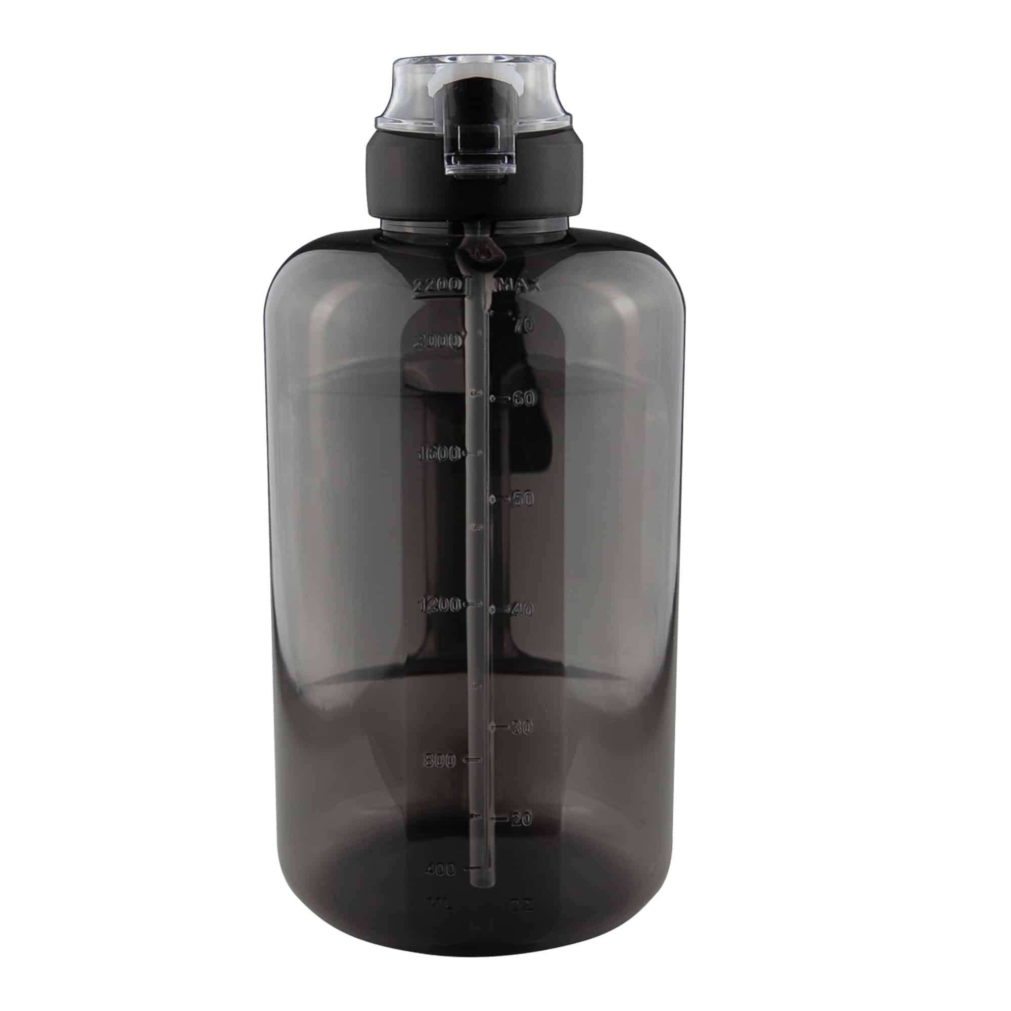 Stay hydrated and power your day with this 2.2L Giant Water Bottle, featuring clear measurements printed on the front for easy tracking. Designed with fitness enthusiasts in mind, it provides ample water to keep you properly hydrated during long training sessions, gym workouts, or outdoor adventures. Its durable, easy-to-grip design makes it the perfect companion for on-the-go hydration. Cold water only, not suitable for holding hot/boiling water. Handwash only, not dishwasher safe.