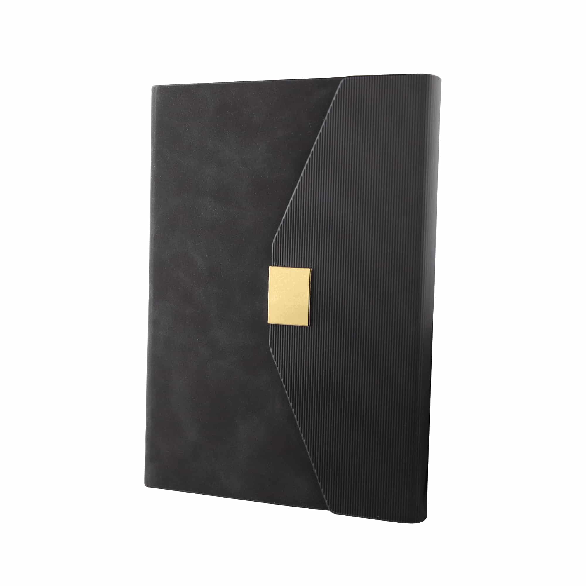 The Lancaster Notebook offers an elegant, functional envelope design with a secure magnetic closure, 8mm lined paper for neat writing, a convenient page divider to keep your place, and premium branding opportunities that make it ideal for corporate gifting or professional use. Velevet finish so each book has a uniquee finish, with thid luxury feeling notebook it elevates any office space.