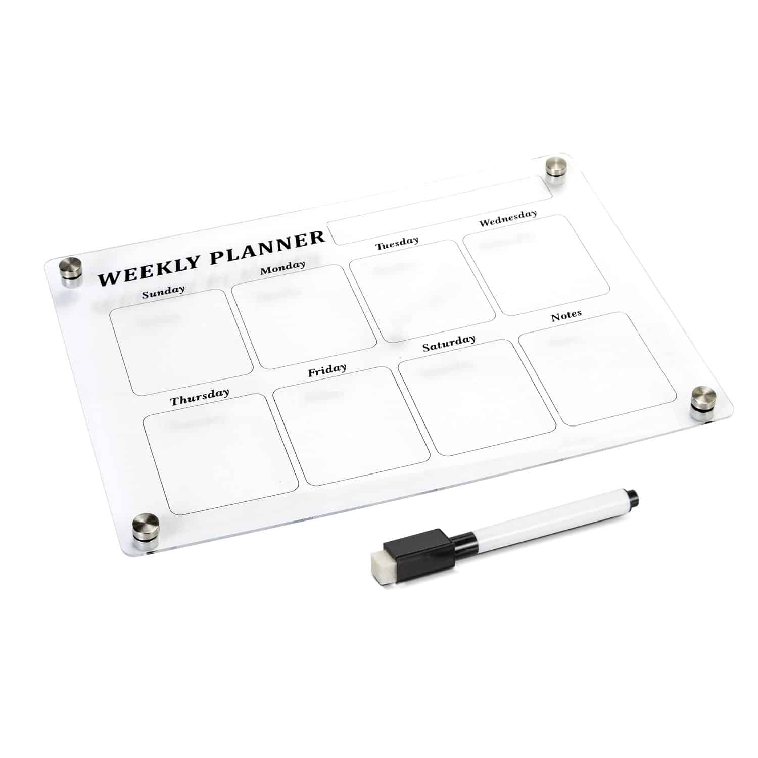 Components Included(Transparent Acrylic Planner | Black Marker with Eraser | Installation Kit)