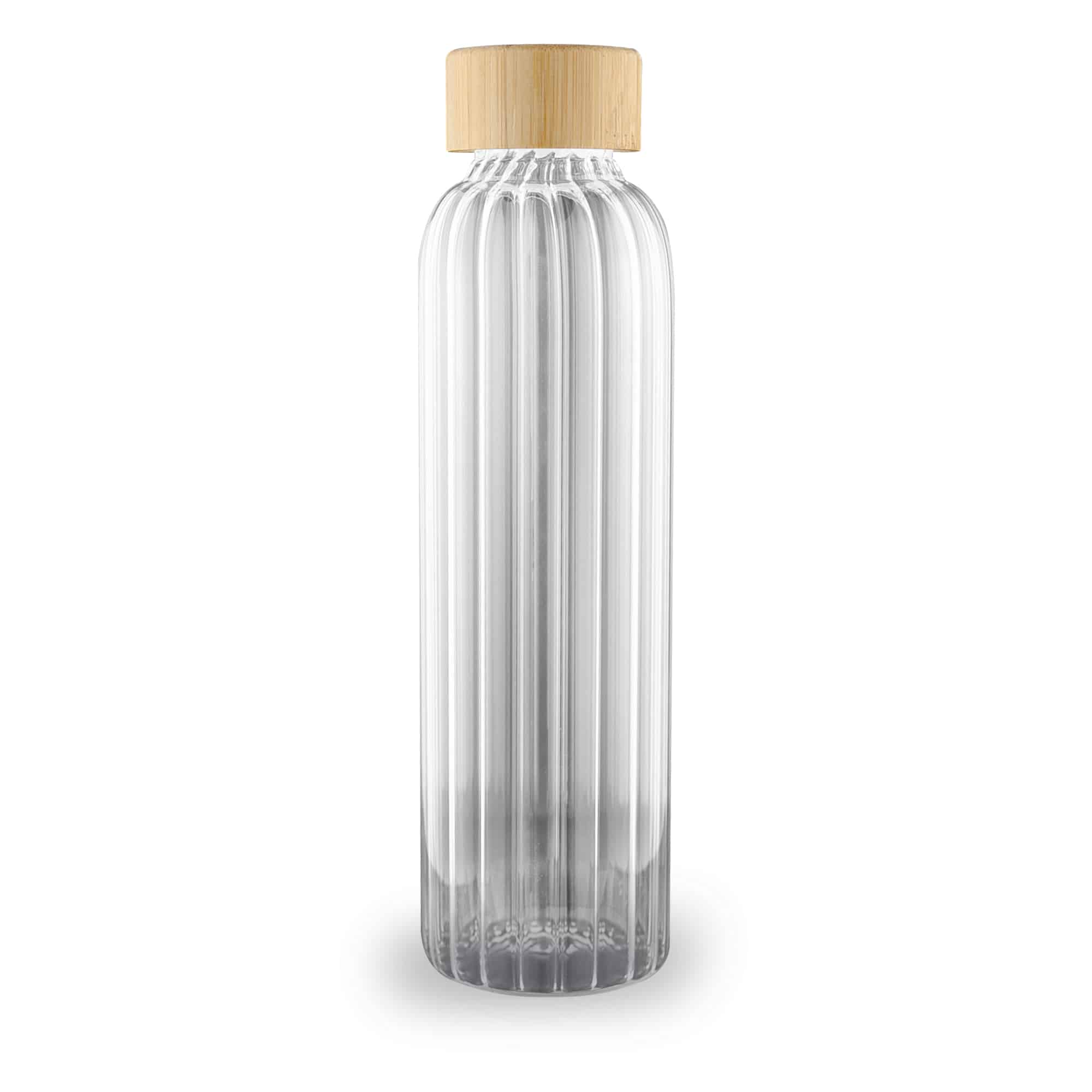 Introducing the 550ml Whimsy Glass Drink Bottle, where style meets functionality. Crafted from premium glass with a unique ribbed interior for seamless branding opportunities, it’s finished with a natural wood lid for a touch of elegance. A refined, eco-conscious choice for everyday hydration. Handwash only, not dishwasher safe. Only compatible with cold water beverages, not suitable for hot/boiling water.