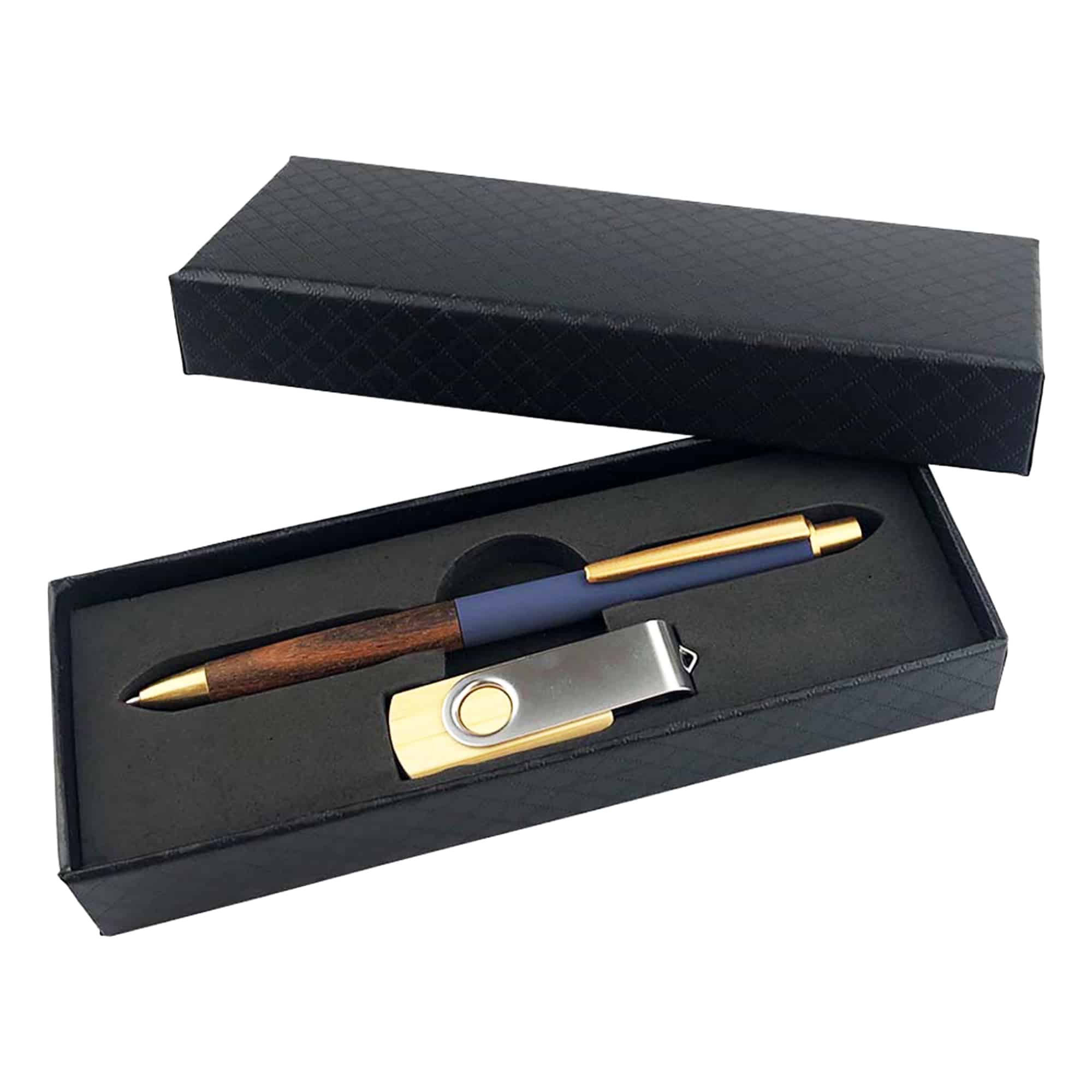 This sleek gift set features the premium Manchester Metal Pen paired with the eco-conscious Tallinn Bamboo USB 16GB, all presented in a black cardboard box with a custom foam insert. A modern and professional set, ideal for stylish and practical corporate gifting.